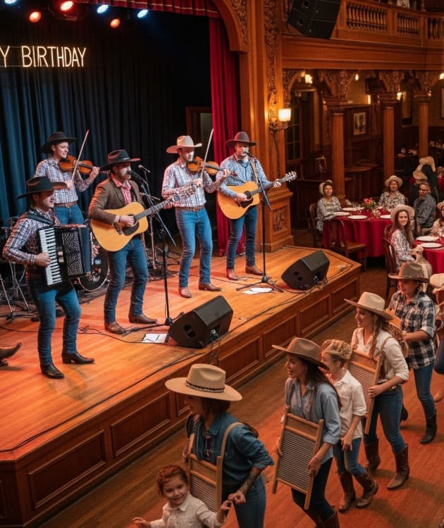 • Music Yupi Hee Haw: Música en vivo con 7 músicos (Teclado, Banjo, Bajo, Violín, Viola, Guitarra,  y Washboard) y  elenco de 6 personajes.
